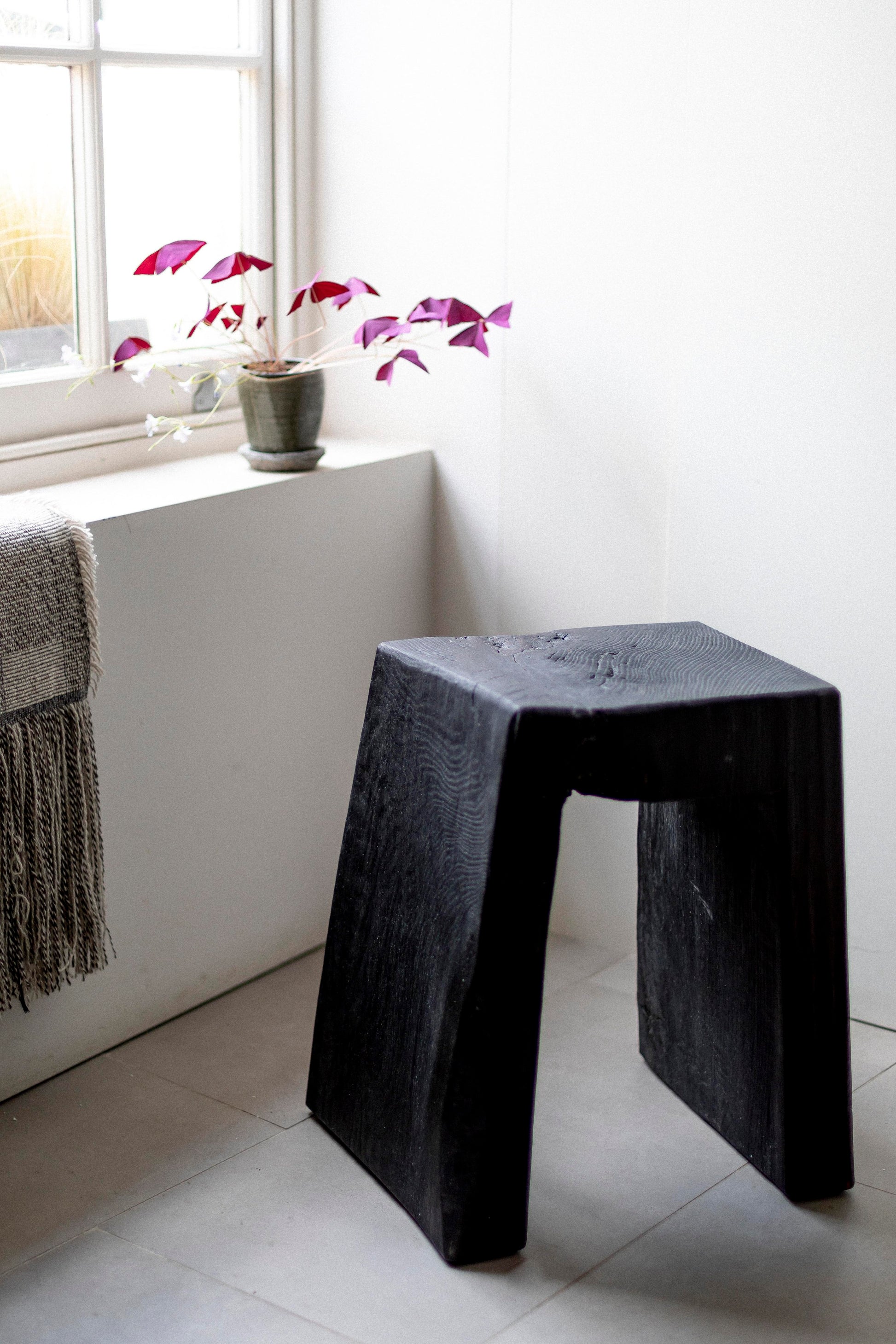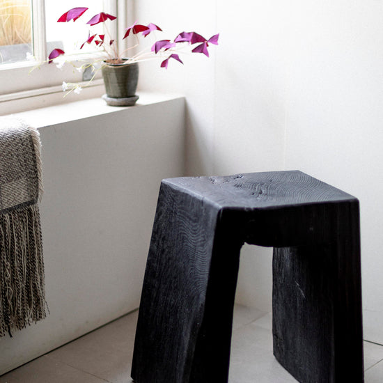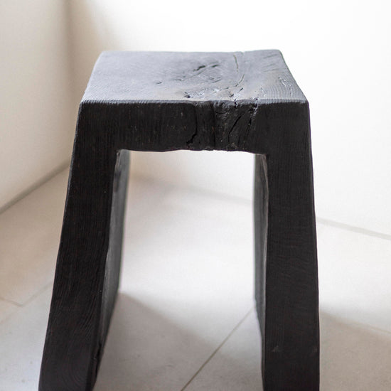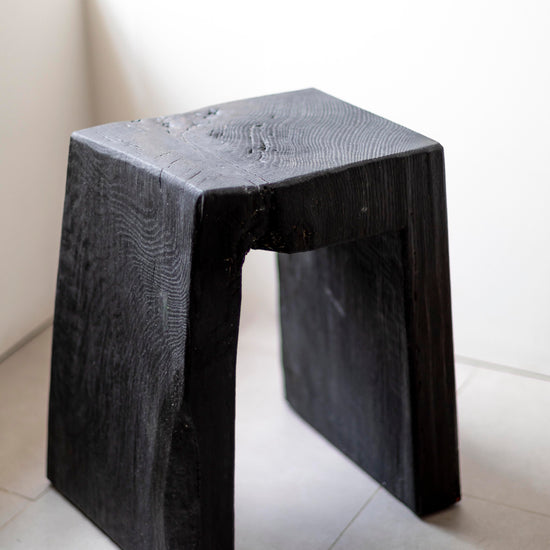 Charred and Oiled Oak Stool by Fritz Baumann