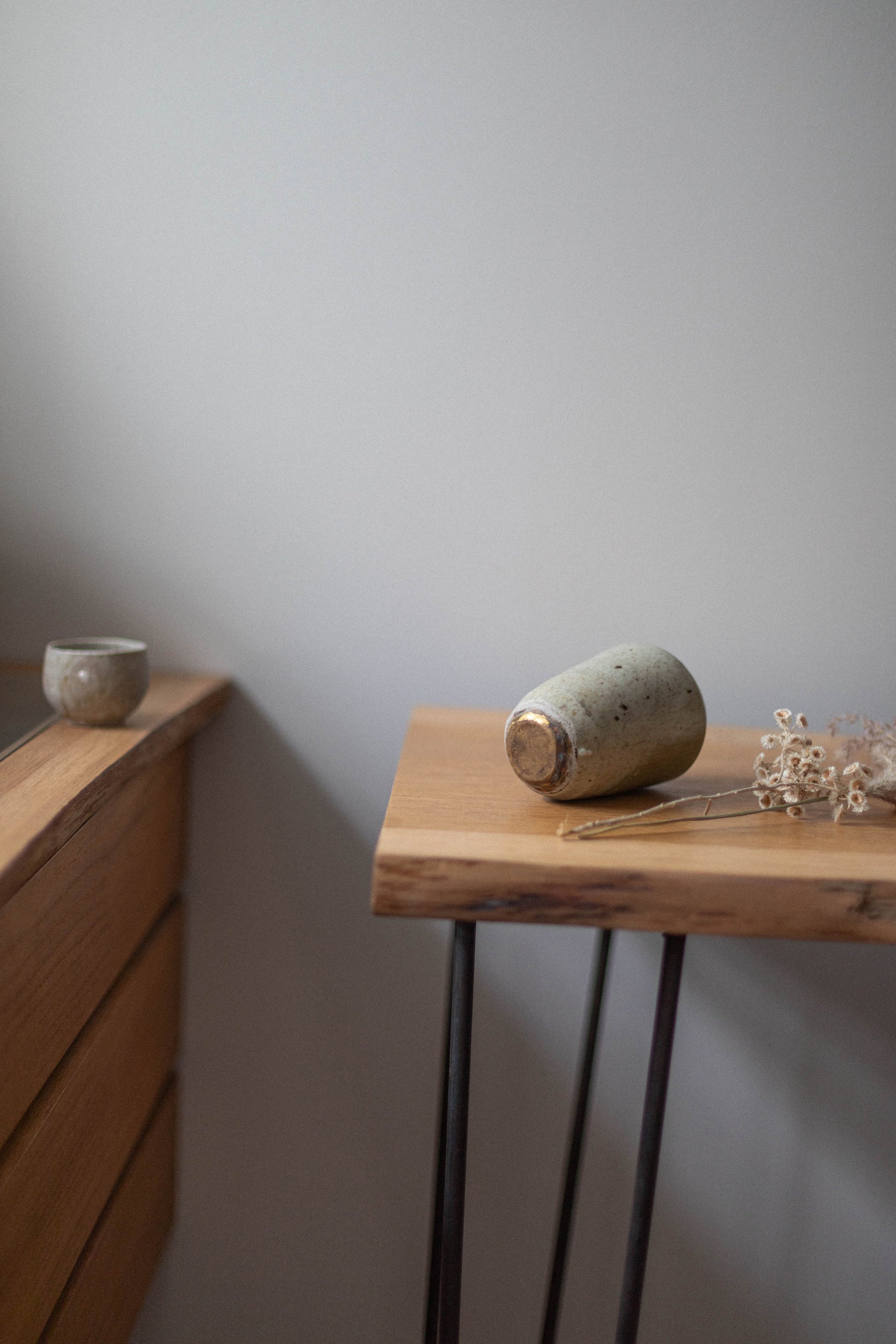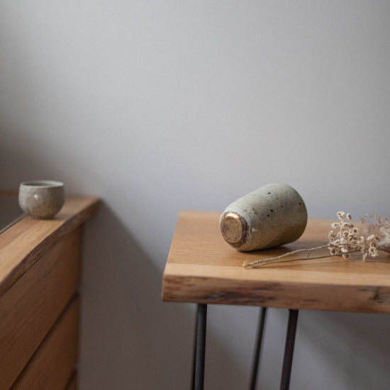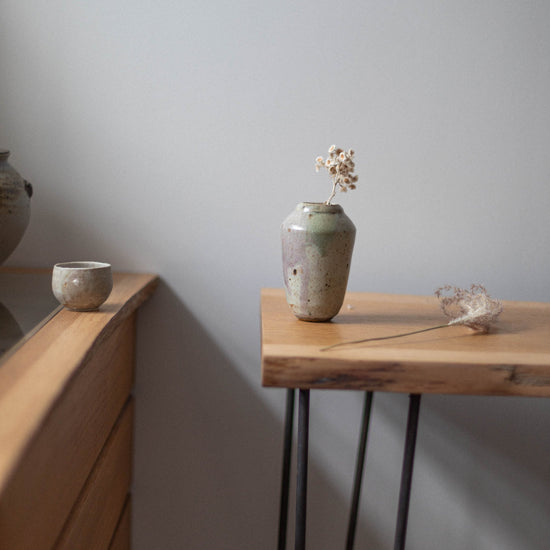 Fossilised Wood Ash Tall Jar and Brass Base by Chloé Rosetta Bell