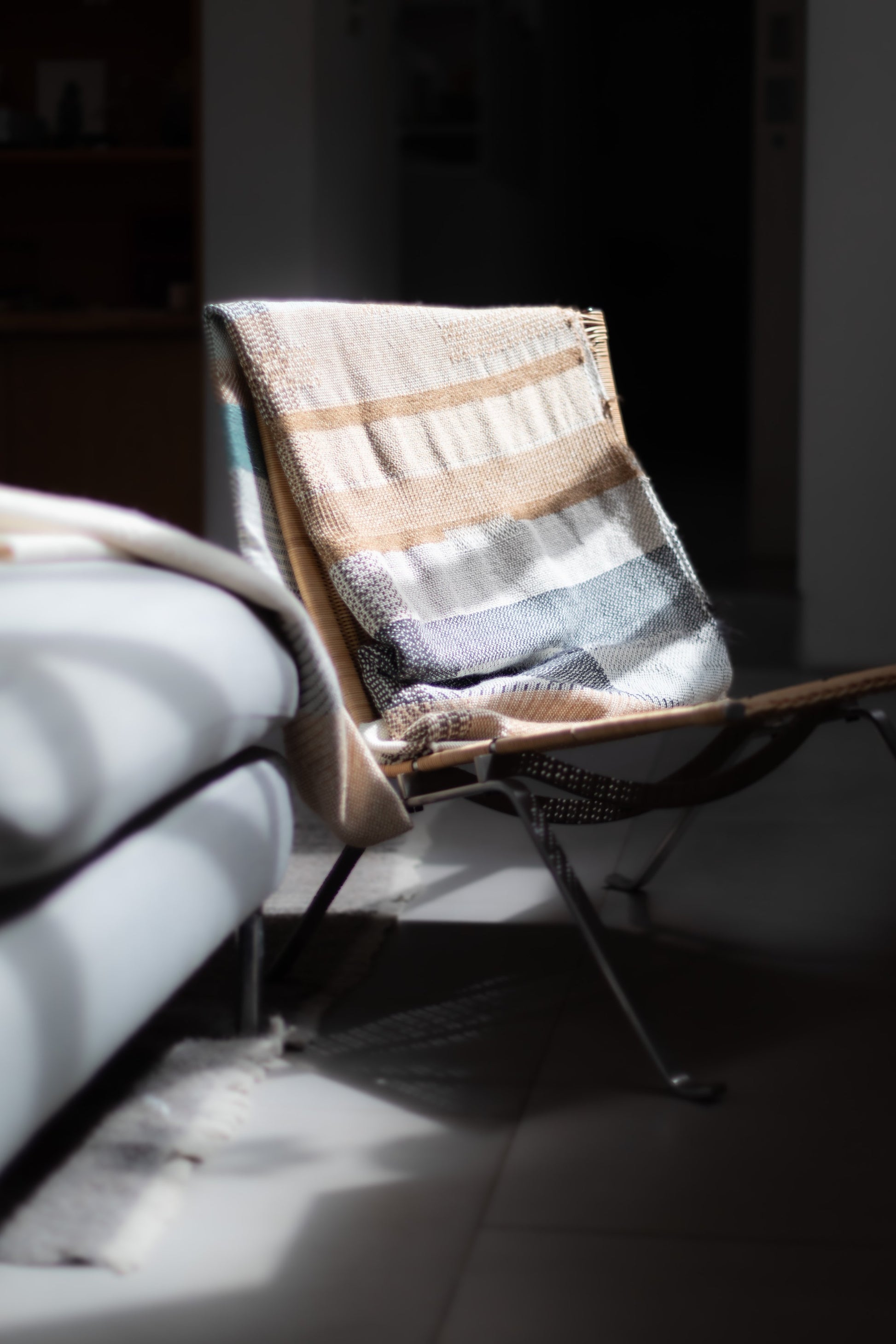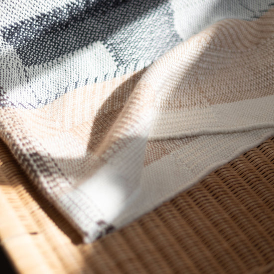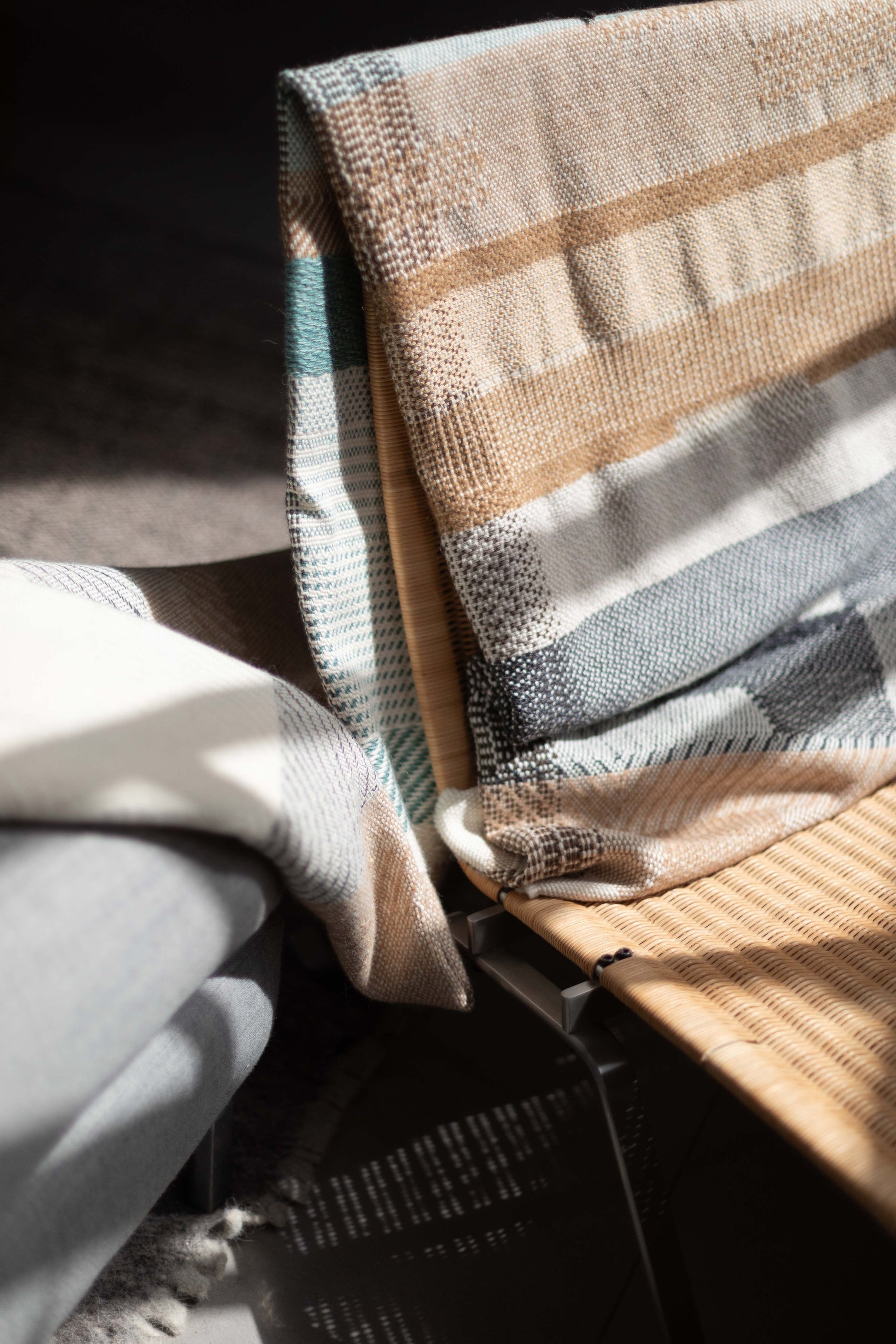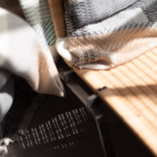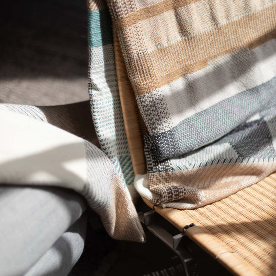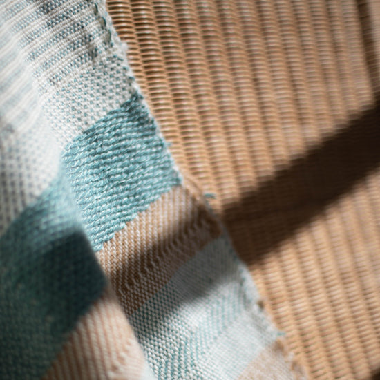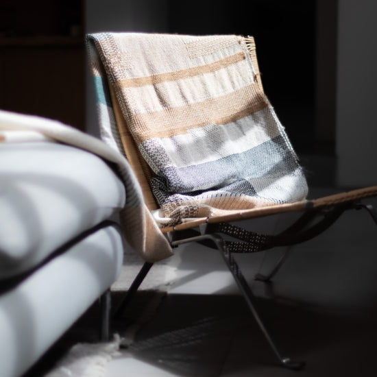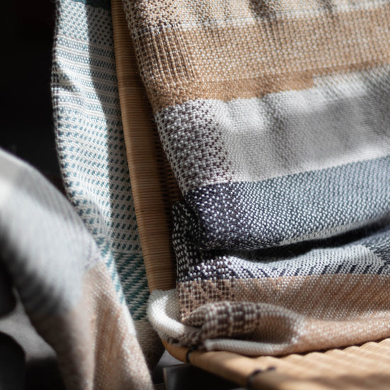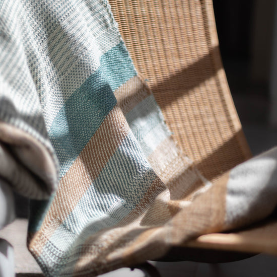 Hand-woven Alpaca Throw, Sage Green, Caramel Brown & Charcoal Warp by Catarina Riccabona