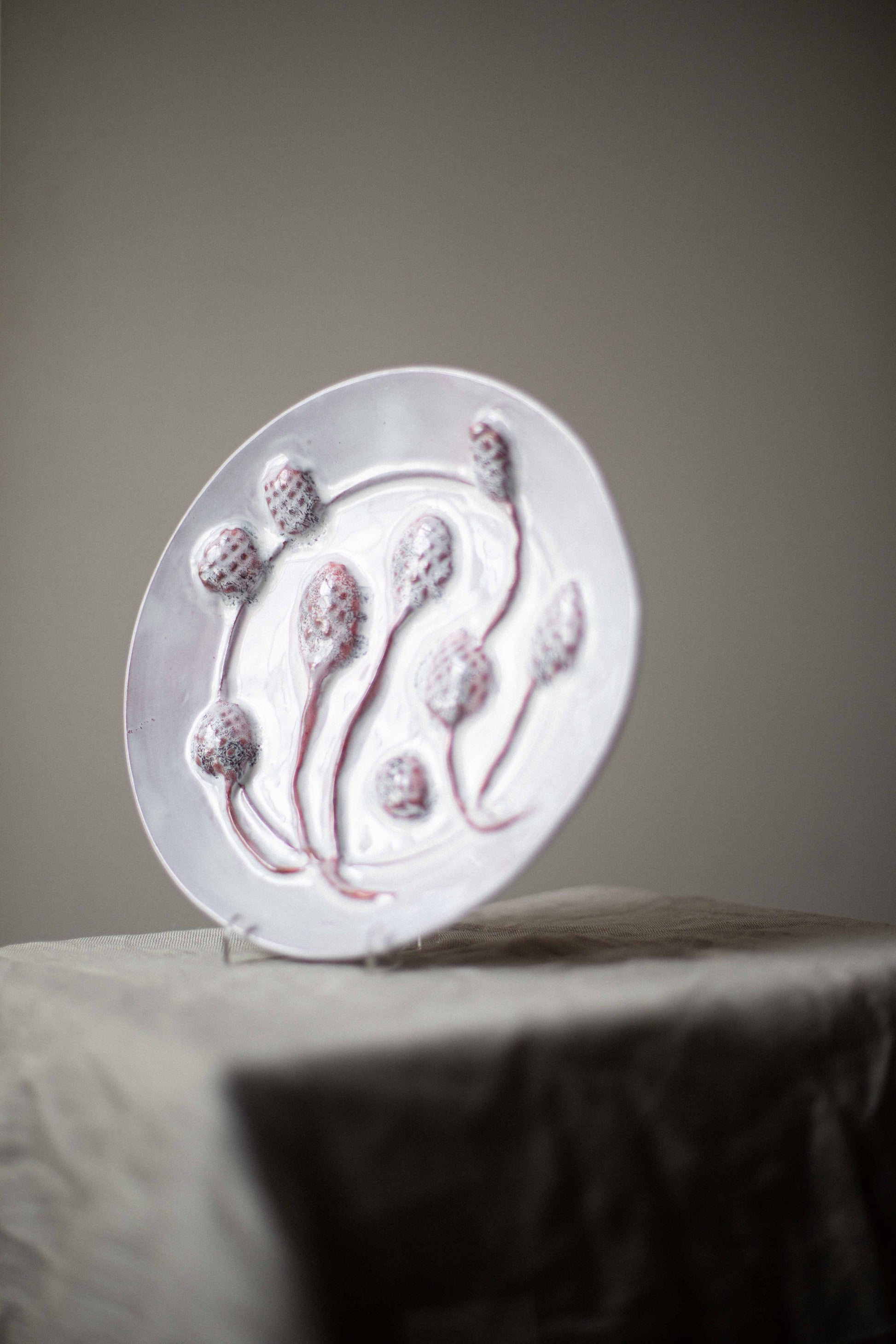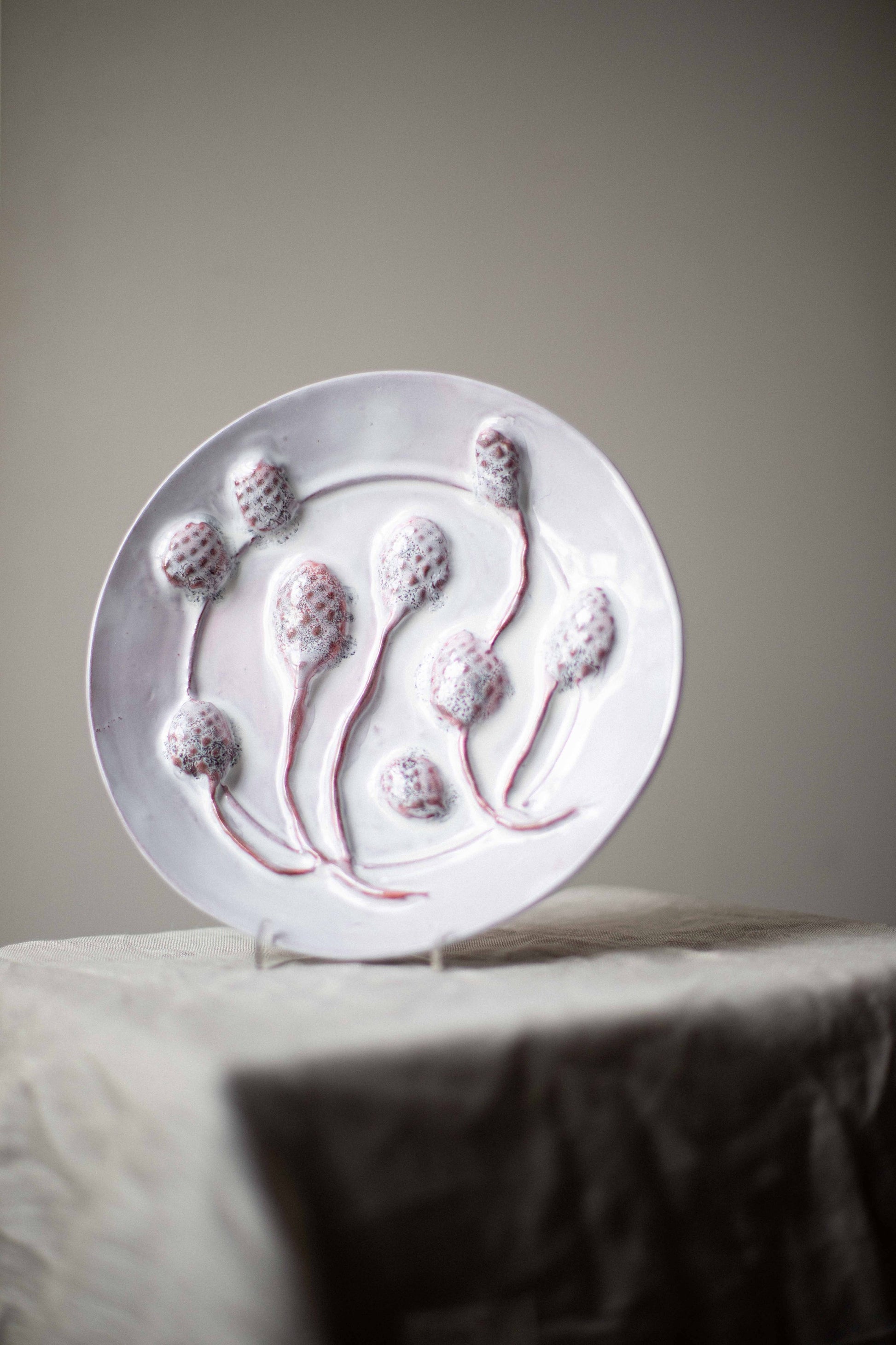 Pink & White Seedheads Plate by Kina Björklund