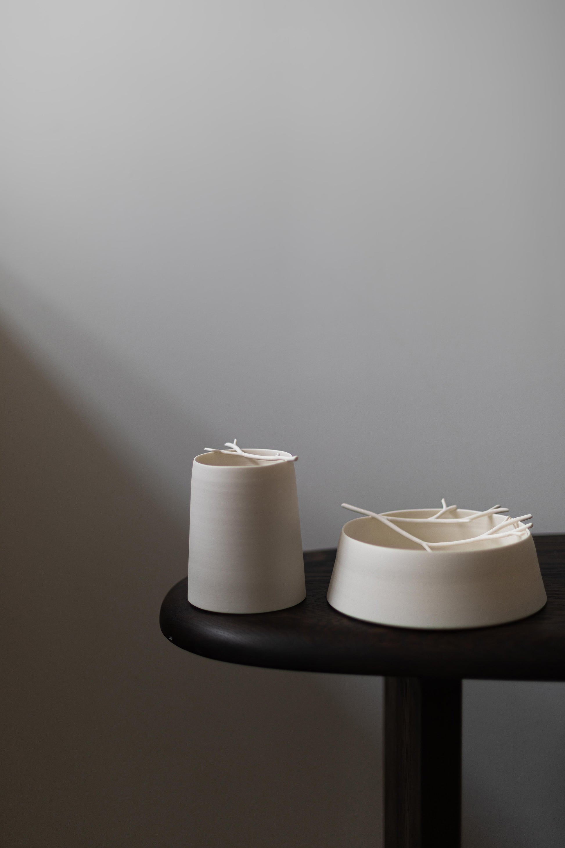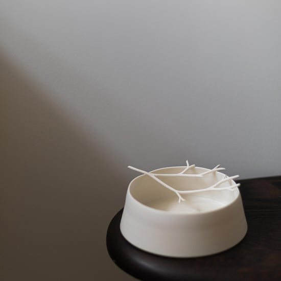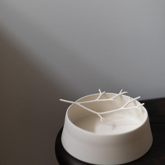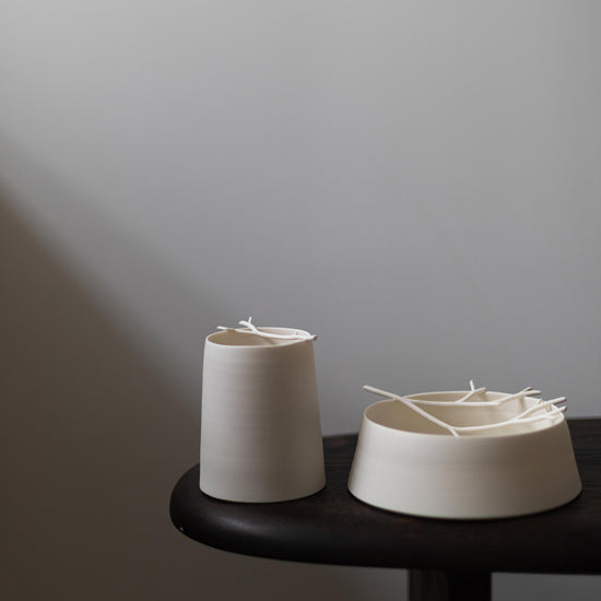Porcelain twig chalk vessel III by Elaine Sheppard Bolt