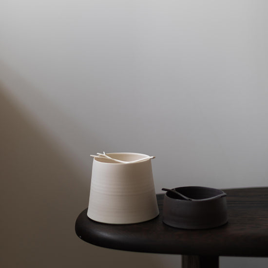 Porcelain twig Flint vessel II by Elaine Sheppard Bolt